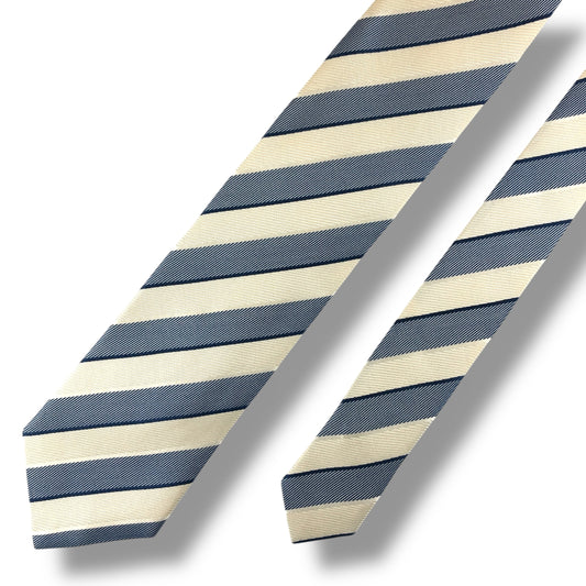 【7805】良品!エルメネジルドゼニア ネクタイ 青×クリーム色系