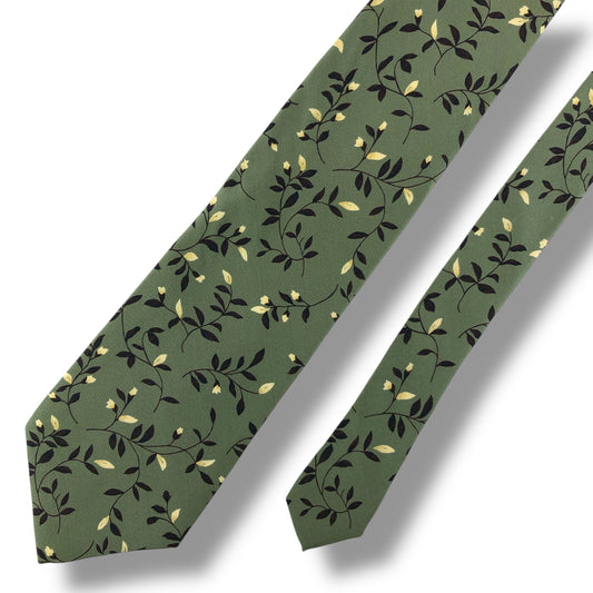 【7815】美品ー良品!クロエ ネクタイ グリーン系 葉柄