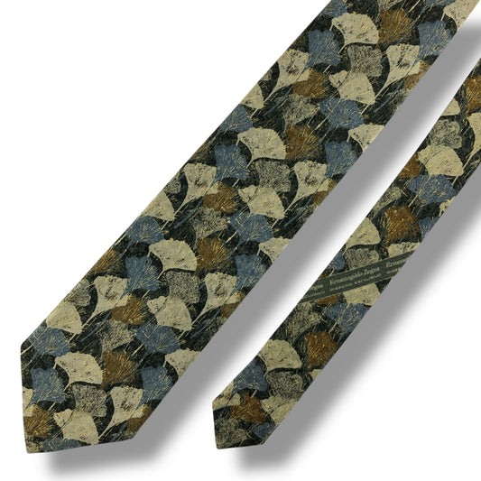 【7806】美品!エルメネジルドゼニア ネクタイ グリーン系 イチョウ柄