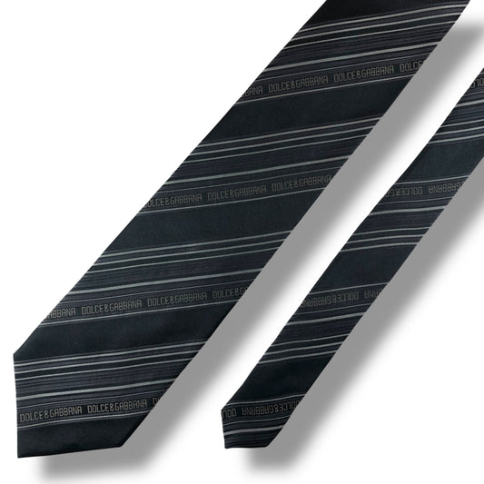 【8038】美品!ドルチェアンドガッバーナ ネクタイ ブラック系 ストライプ