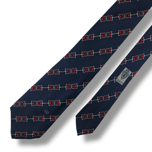 【7546】美品ー良品!グッチ ネクタイ ネイビー系