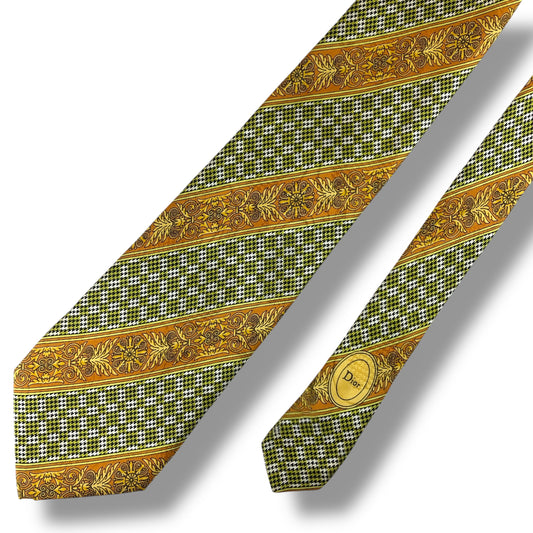 【7515】良品!クリスチャンディオール ネクタイ 黄緑系 オレンジ系
