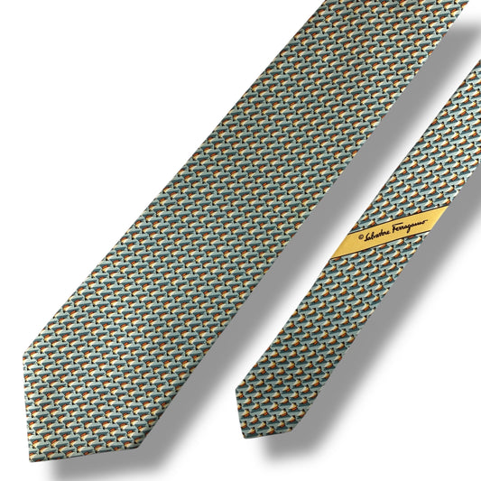 【7518】美品!サルヴァトーレフェラガモ ネクタイ ライトグリーン系