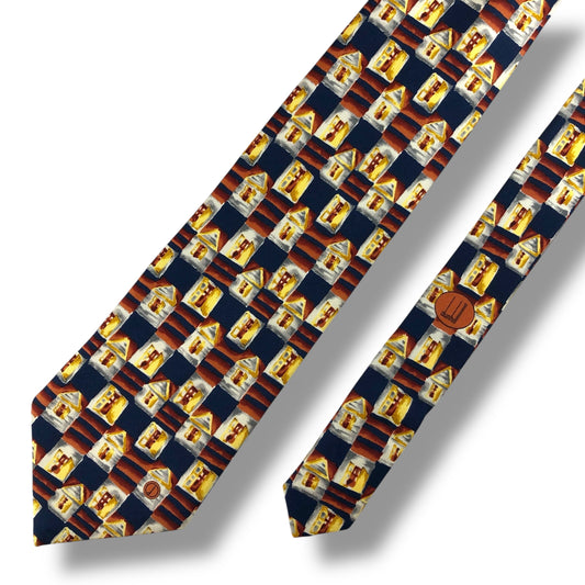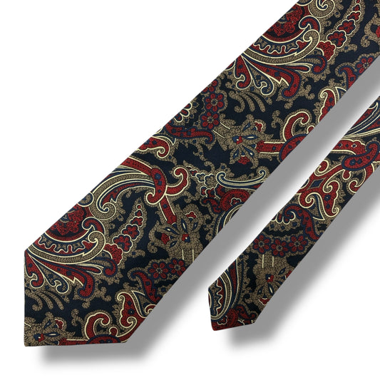 【7482】美品!アクアスキュータム ネクタイ ネイビー系 レッド系