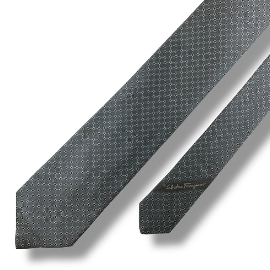 【7485】良品!サルヴァトーレフェラガモ ネクタイ グレー系 ガンチーニ柄
