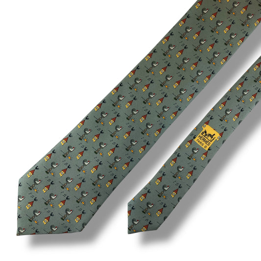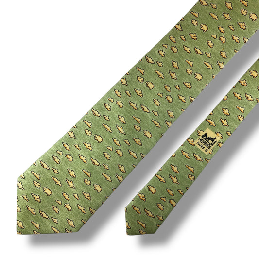【7372】良品!エルメス ネクタイ 薄緑系 にわとり柄