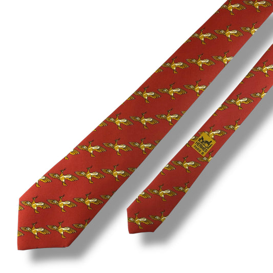 【7361】美品!バーバリー ネクタイ レッド系 ホースロゴ