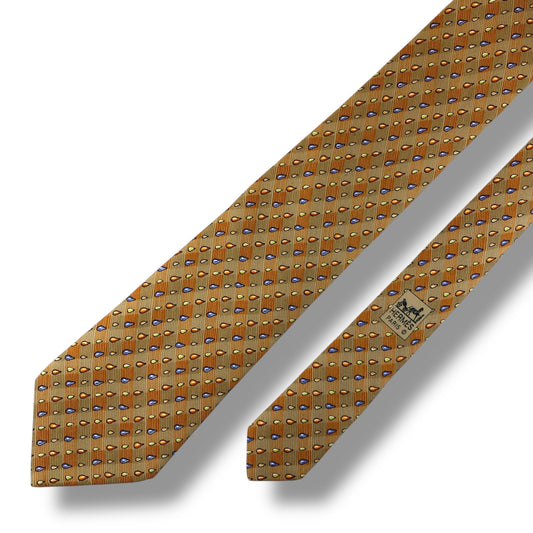 【7373】良品!エルメス ネクタイ オレンジ系 しずく柄