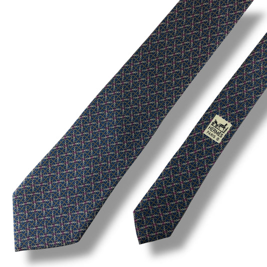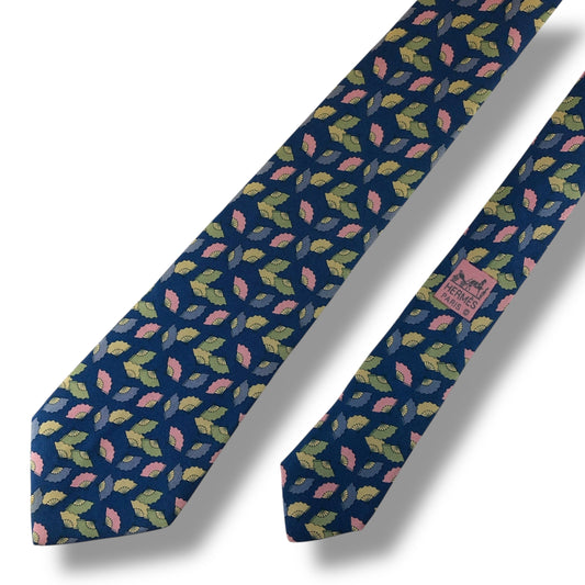 【7305】美品!エルメス ネクタイ ブルー系 H柄
