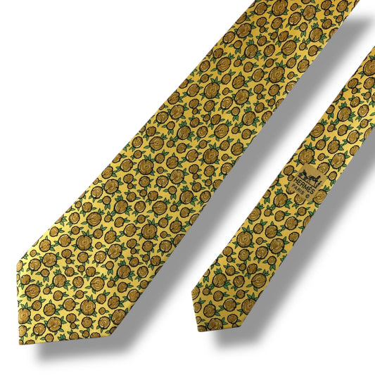 【7308】良品!エルメス ネクタイ イエロー系 切り株柄