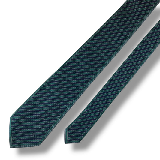 【7313】良品!ミラショーン ネクタイ ネイビー系 グリーン系 ストライプ柄