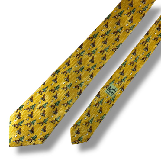 【7314】美品ー良品!エルメス ネクタイ イエロー系 ビーバー柄