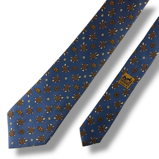 【7301】良品!エルメス ネクタイ ブルー系 カメ柄