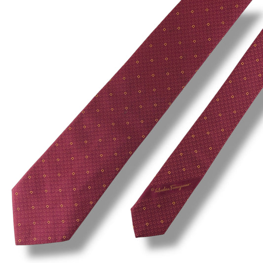 【7302】良品!フェラガモ ネクタイ レッド系 ガンチーニ柄