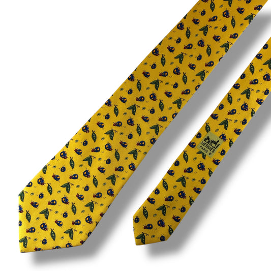 【7303】良品!エルメス ネクタイ イエロー系 てんとう虫柄