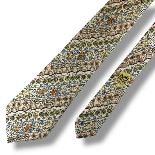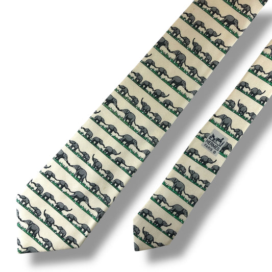 【7304】良品ー可品!エルメス ネクタイ クリーム系 ゾウ柄