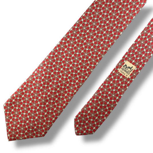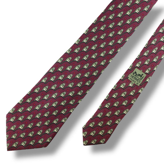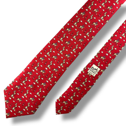 【7268】良品ー可品!エルメス ネクタイ レッド系 乗馬柄