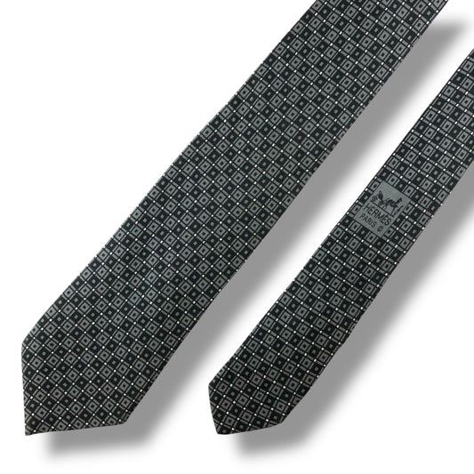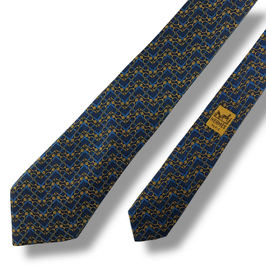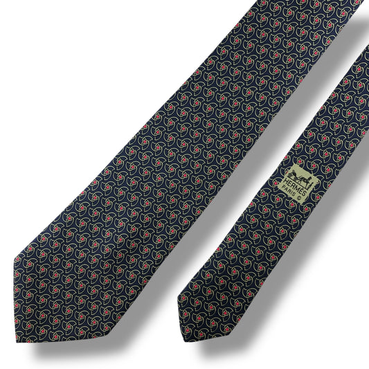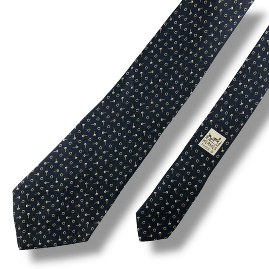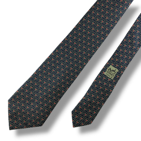 【7272】良品!エルメス ネクタイ ダークネイビー系 ネジ柄