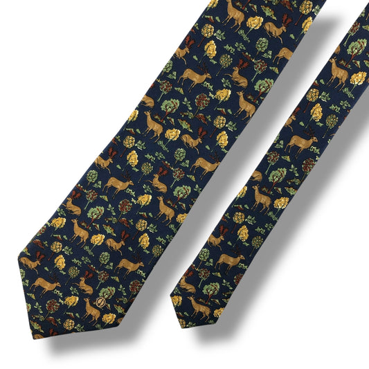 【7110】良品!ダンヒル ネクタイ ネイビー系 鹿柄