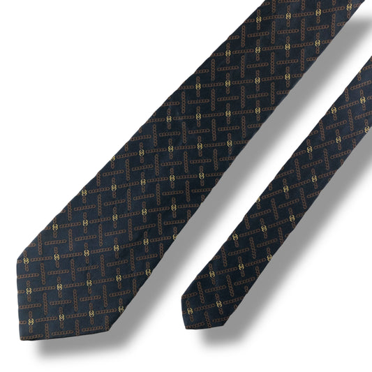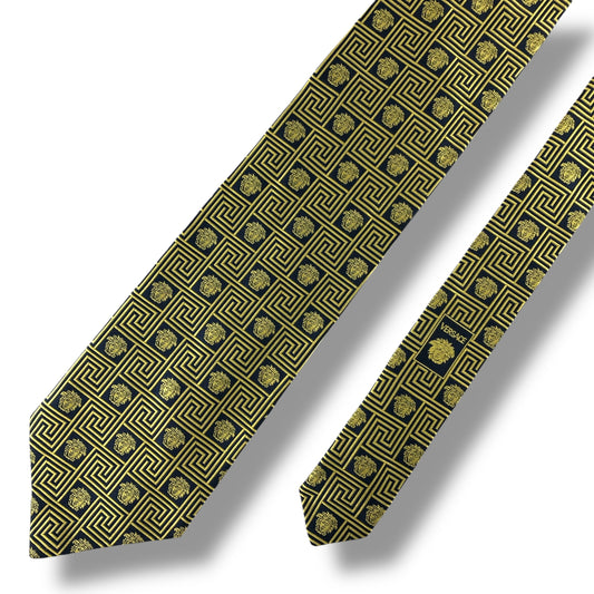 【7098】美品!ジャンニヴェルサーチ ネクタイ ネイビー系 ゴールド系