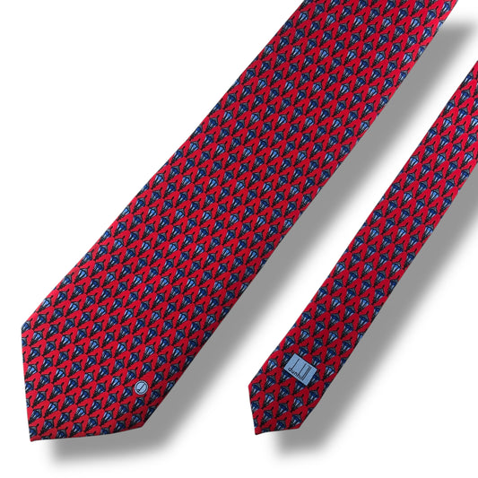 【7117】美品!ダンヒル ネクタイ レッド系 ライト柄