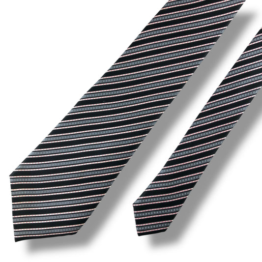 【7119】良品!アルマーニ ネクタイ ブラック系 ストライプ柄