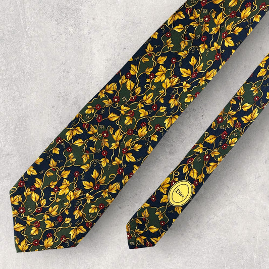 【6959】良品!クリスチャンディオール ネクタイ ネイビー系 花柄