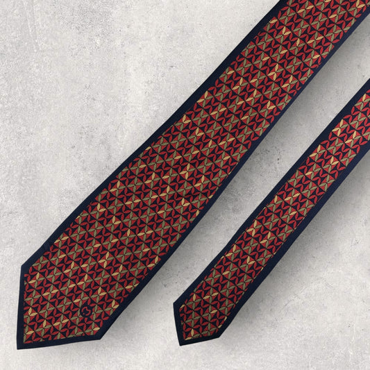 【6962】良品!ミラショーン ネクタイ ネイビー系 レッド系