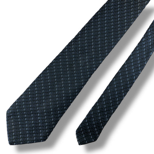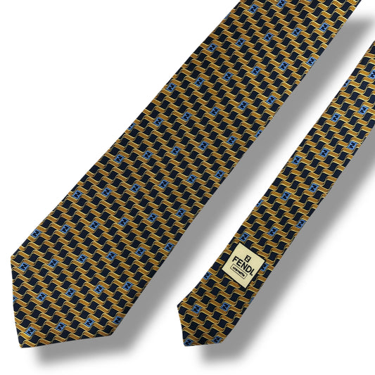 Sold out【7958】美品!フェンディ ネクタイ ネイビー系 FF柄