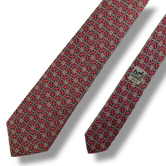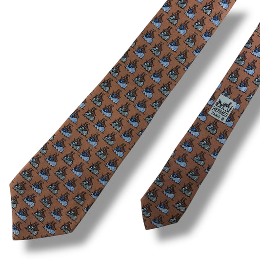 [7445] Beautiful item! Hermes necktie in reddish brown