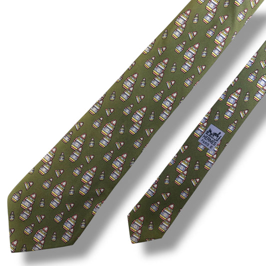 [7440] Good condition! Hermes necktie in green