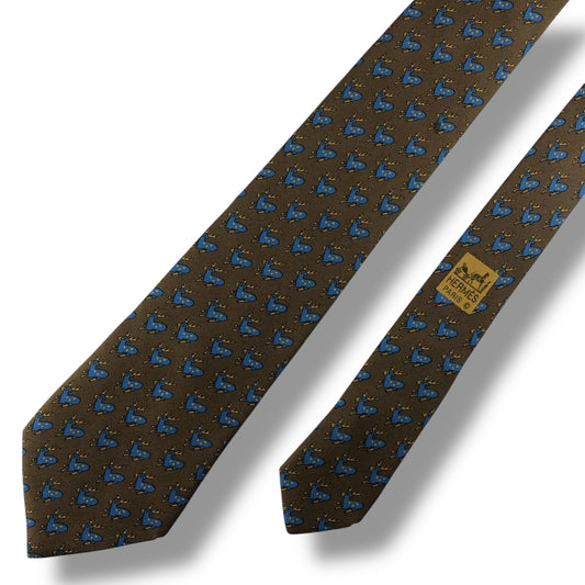 Sold out【7687】 良品!エルメス ネクタイ ブラウン系 鹿柄