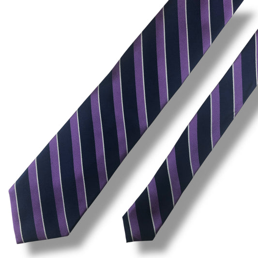 【7708】美品ー良品!カルバンクライン ネクタイ パープル系 ストライプ柄