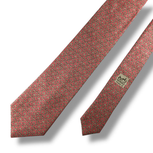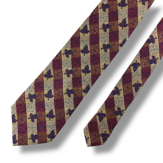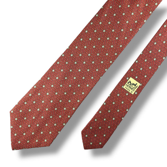 [7176] Beautiful item! Dunhill necktie, red, leaf pattern