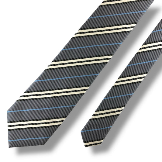 [7178] Beautiful item! Chanel tie in grey and light blue with Coco mark