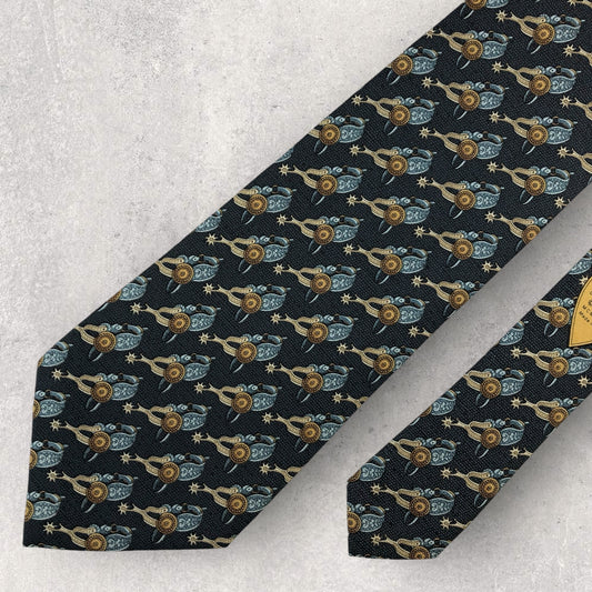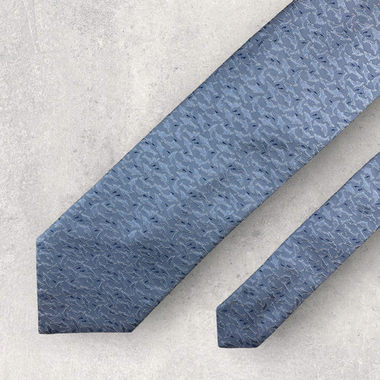 [6535] Good quality! Lanvin tie, blue, dolphin pattern