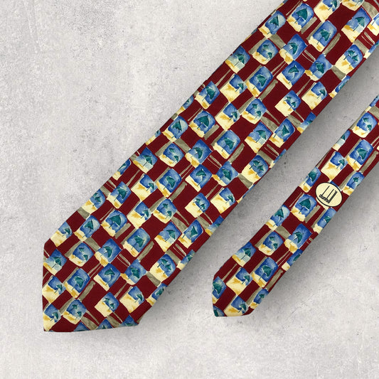 [6402] Good quality! Dunhill necktie, red, umbrella pattern