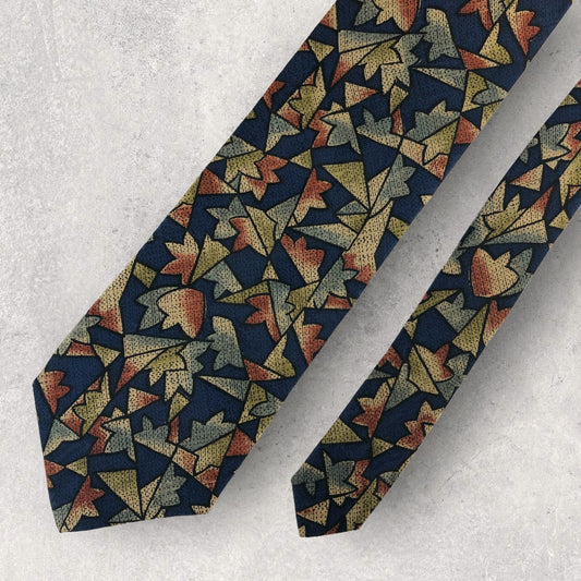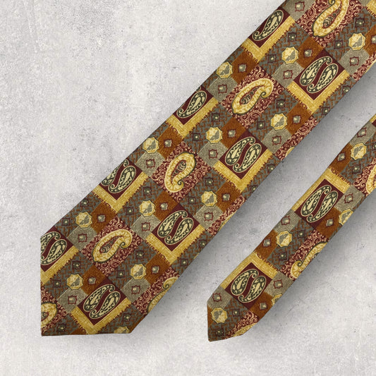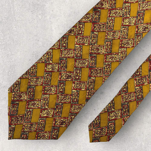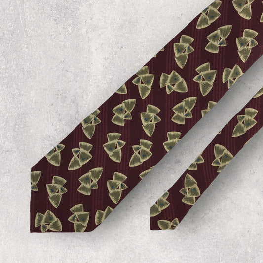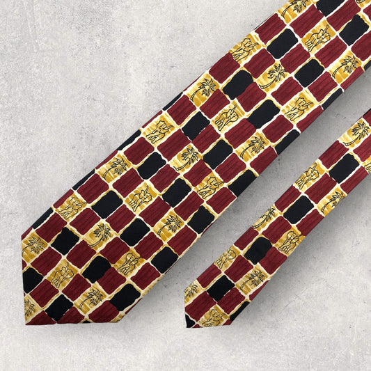 [6405] Good quality! Jim Thompson necktie, red, elephant and palm tree pattern