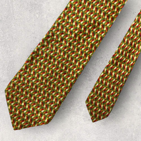 [5795] Good quality! Ermenegildo Zegna tie in yellow-green with bird pattern
