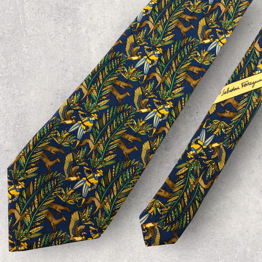 [5625] Beautiful item! Ferragamo tie, blue, animal print