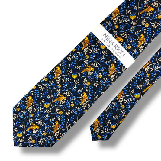 【7633】未使用保管品 ニナリッチ ネクタイ ブルー系 鳥柄