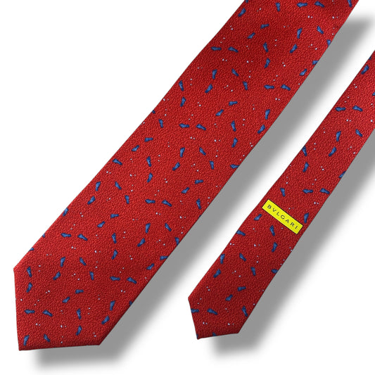 【7635】未使用保管品 ブルガリ ネクタイ レッド系