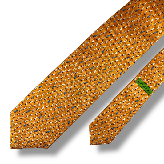 【7632】未使用保管品 ブルガリ ネクタイ オレンジ系