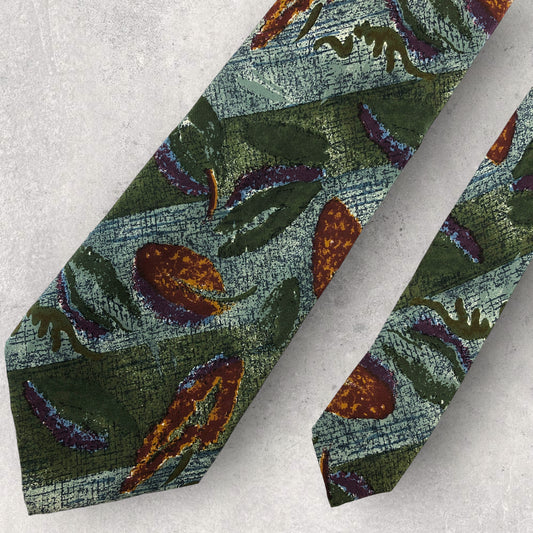 [5230] Beautiful item! Renoma necktie, botanical pattern, green