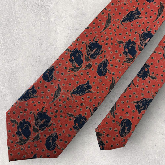 [5322] Beautiful item! PIERRE BALMAIN tie, floral pattern, blue x red