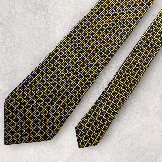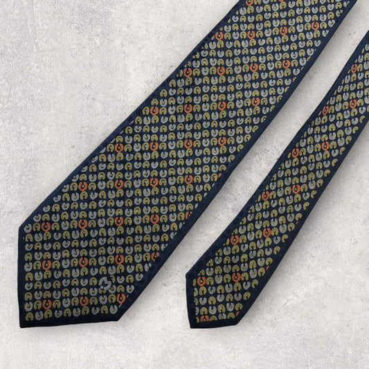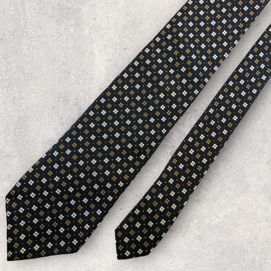 [4484] Good quality! Aquascutum tie, navy and gold