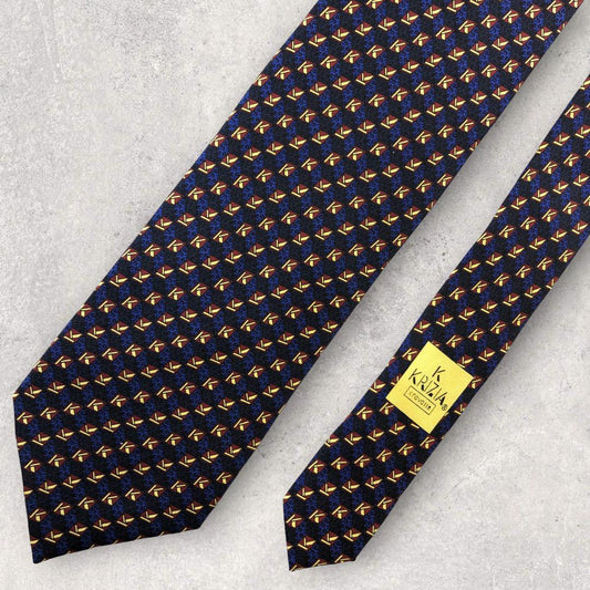 [4646] Good quality! Krizia necktie, black and blue, K pattern