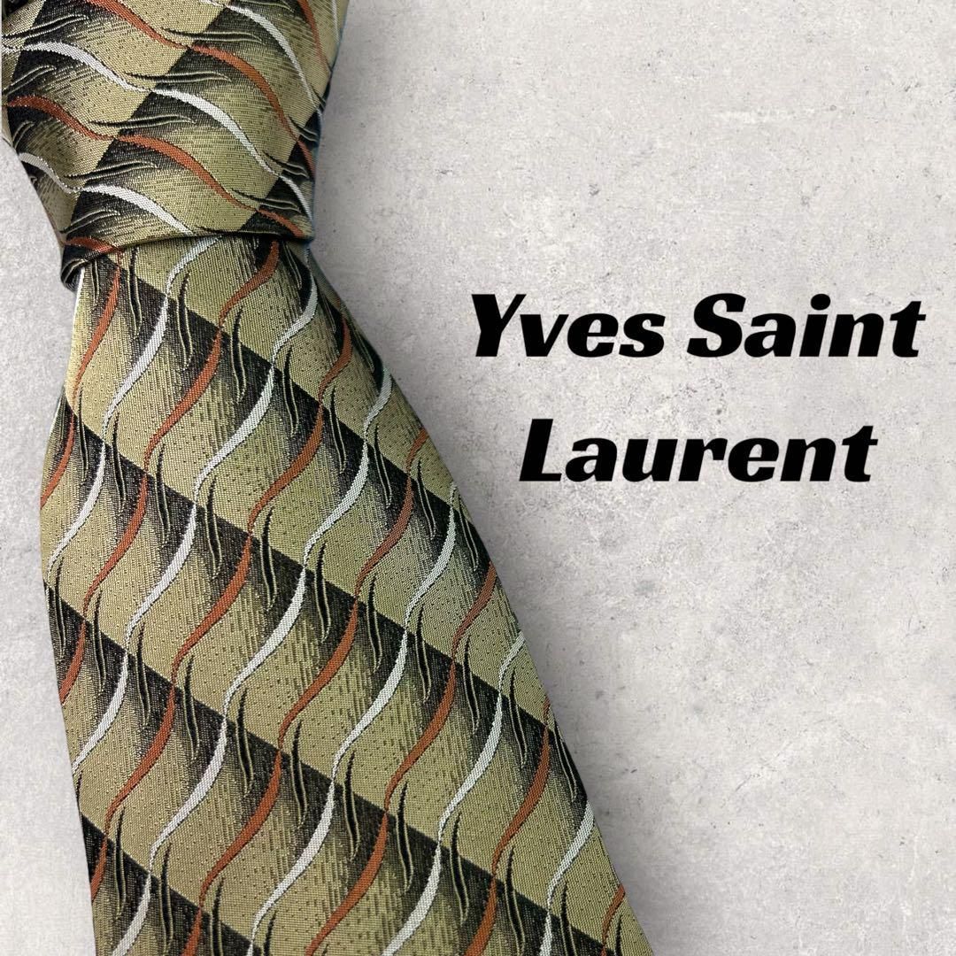 【2980】美品!イブサンローラン ネクタイ カーキブロンズ系