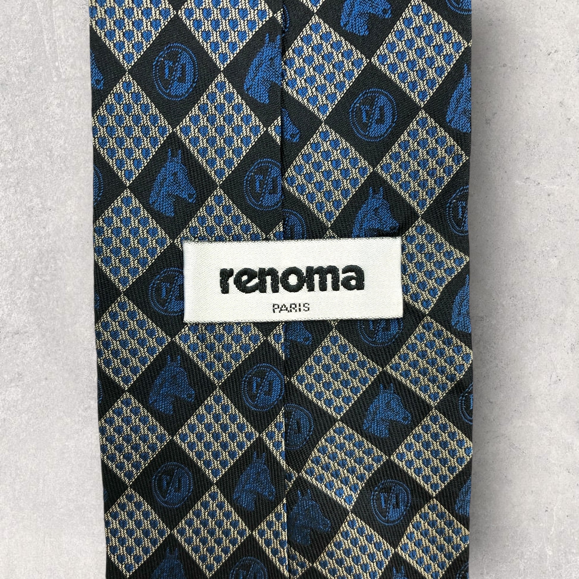 [6581] Beautiful item! Renoma tie, blue, horse pattern