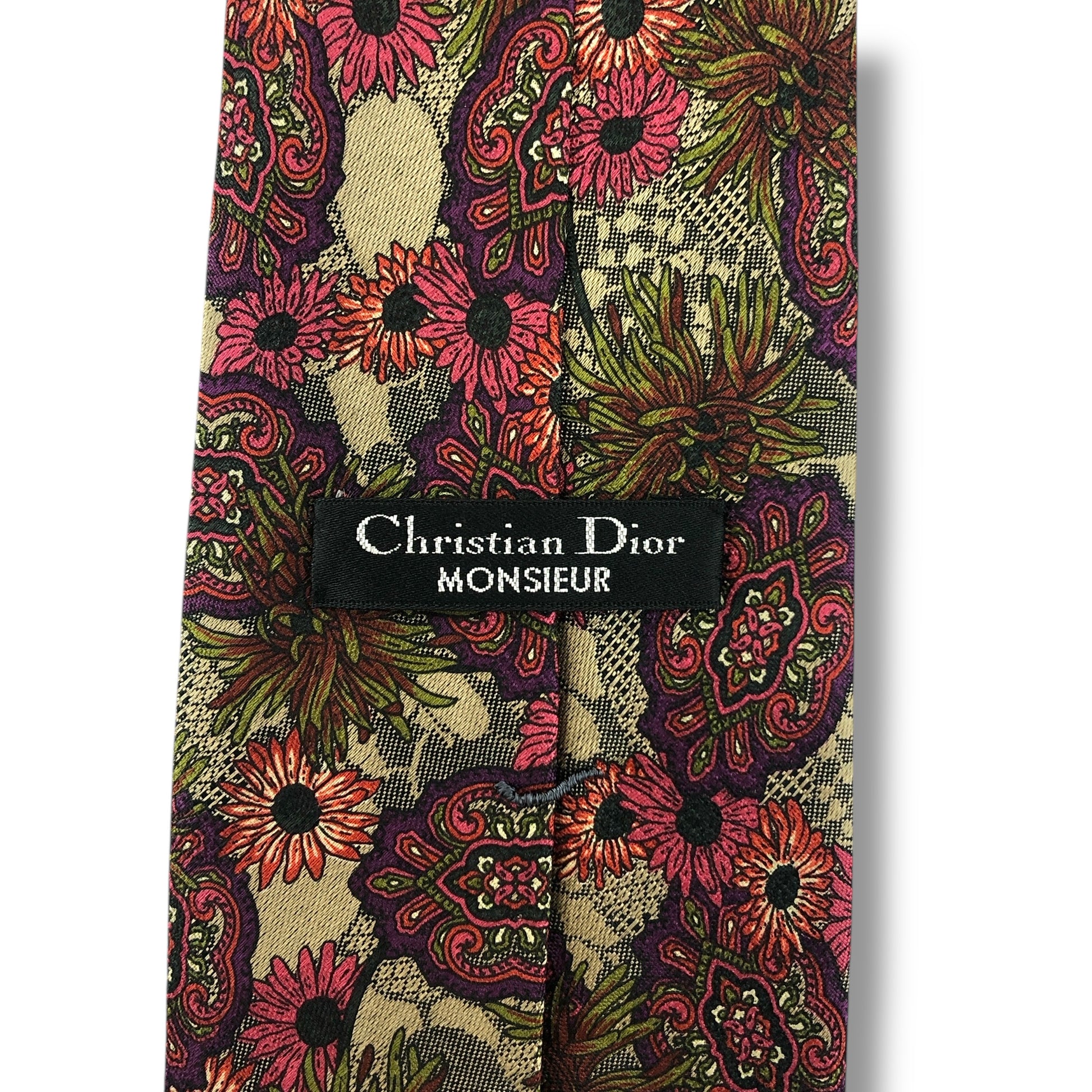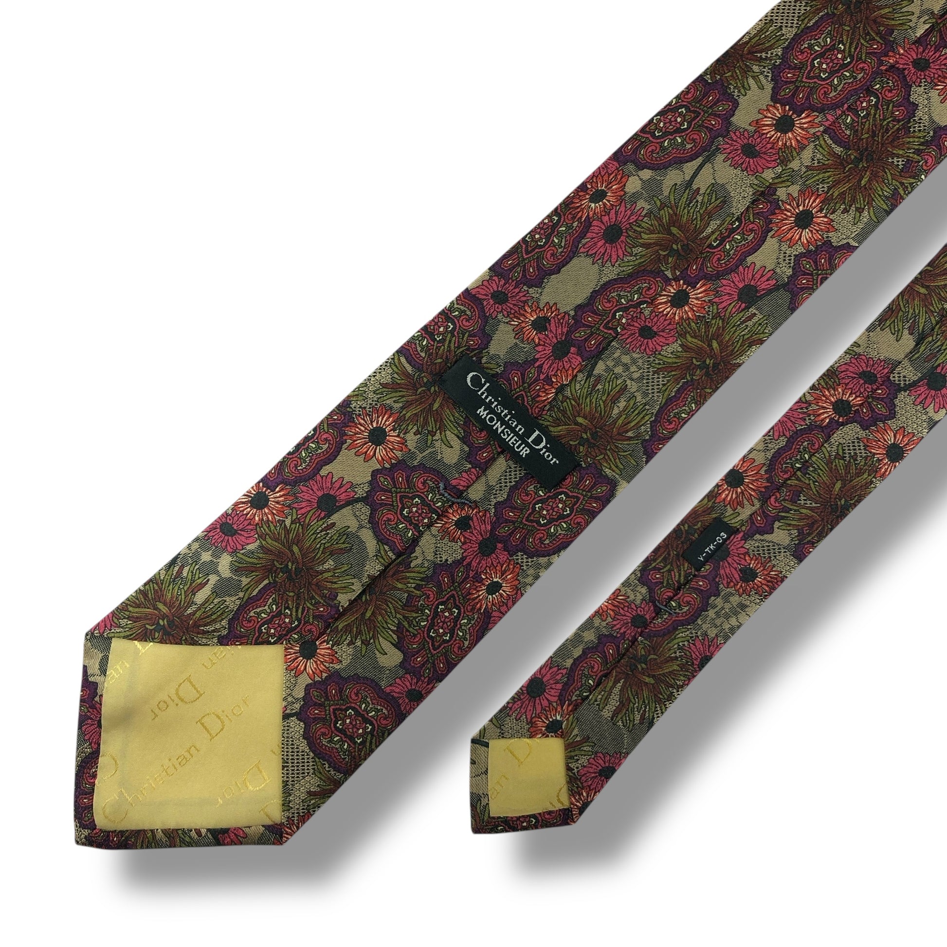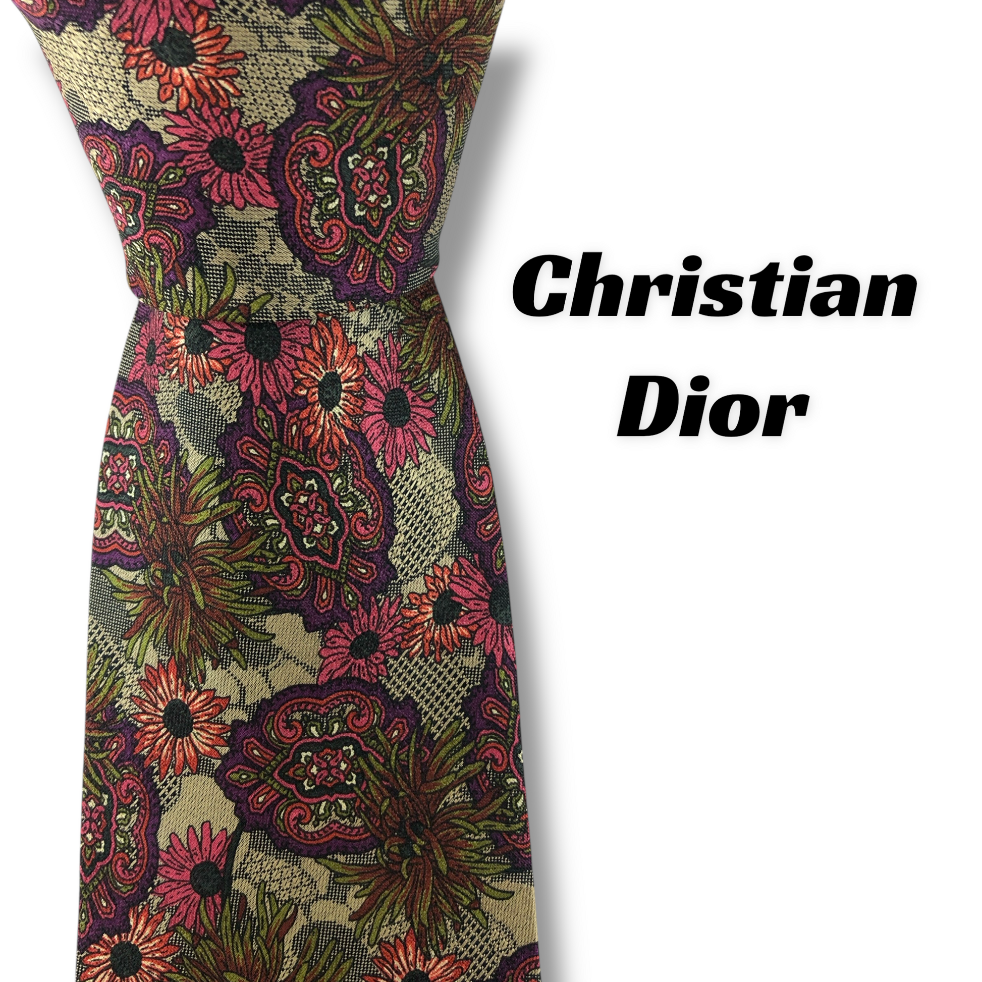 【7535】美品!クリスチャンディオール ネクタイ ベージュ系 花柄系